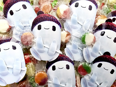 Quest'anno il tema della festa è stato deciso appena una settimana prima perchè la festa stessa è stata in discussione fino all'ultimo momento (ah l'adolescenza! si cambia idea un giorno sì e l'altro pure...), così non ho potuto fare molto più che degli adesivi, dei ciondolini chiave e delle tag con cui personalizzare alcune scatoline trovate da Action (prima o poi vi parlerò di questo posto delle meraviglie e dei tesori che si possono scovare nel suo reparto creativo...) riempite con caramelle sempre prese da Action. Eccole qui: